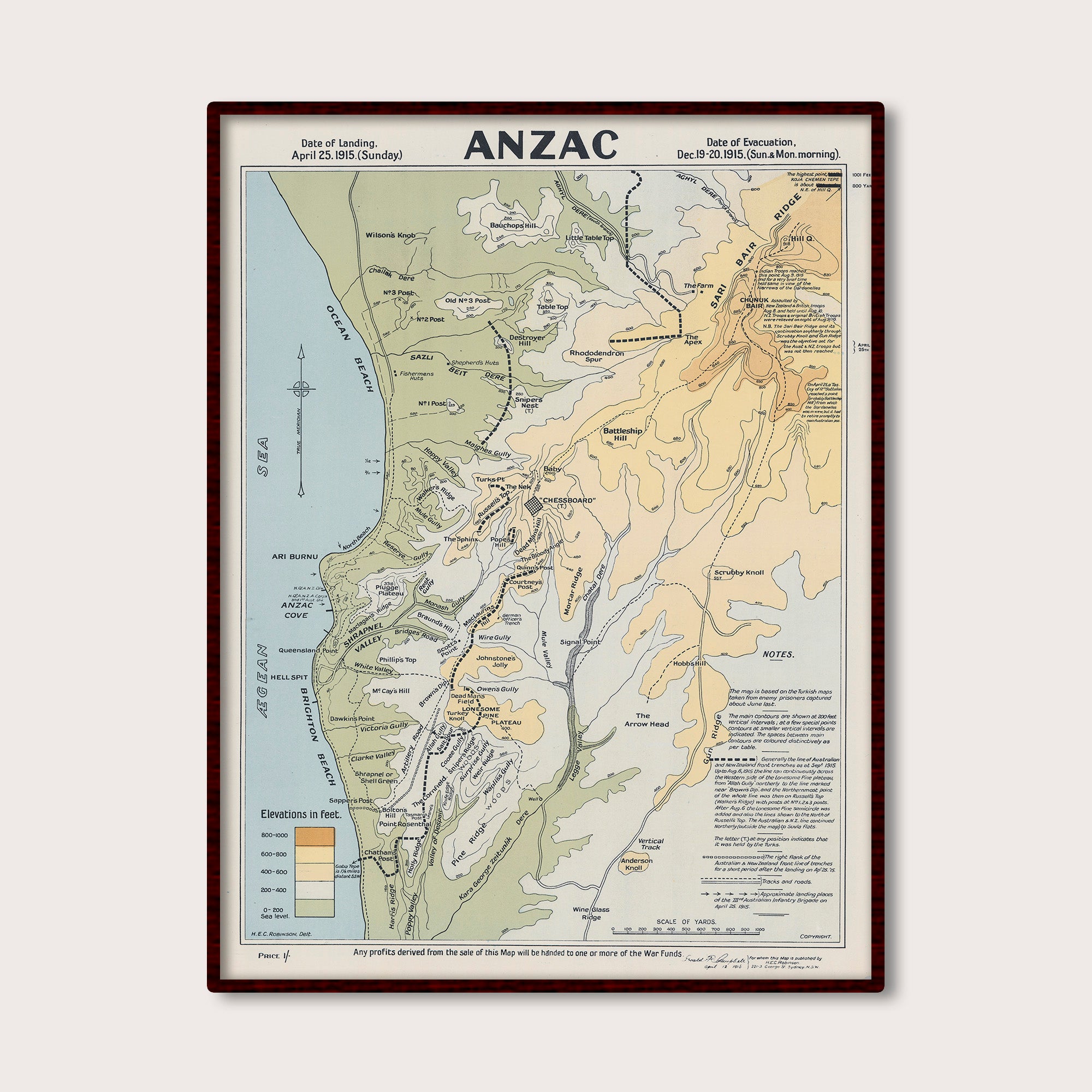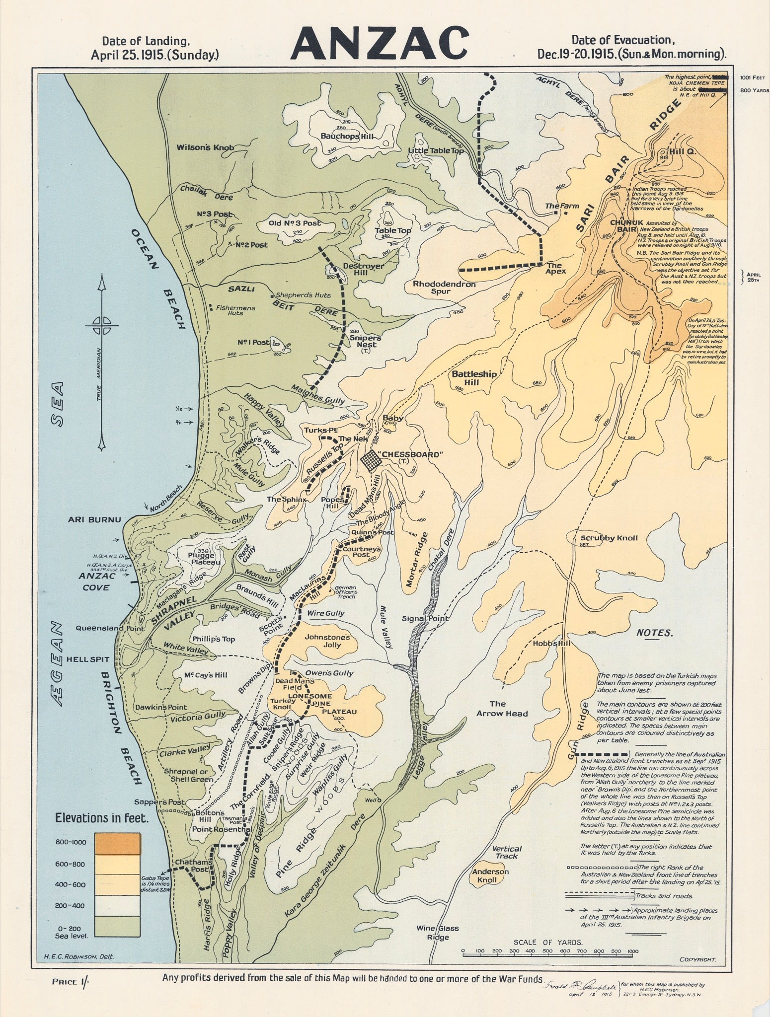 Anzac map - Landing, April 25. 1915 - Evacuation, Dec 1915