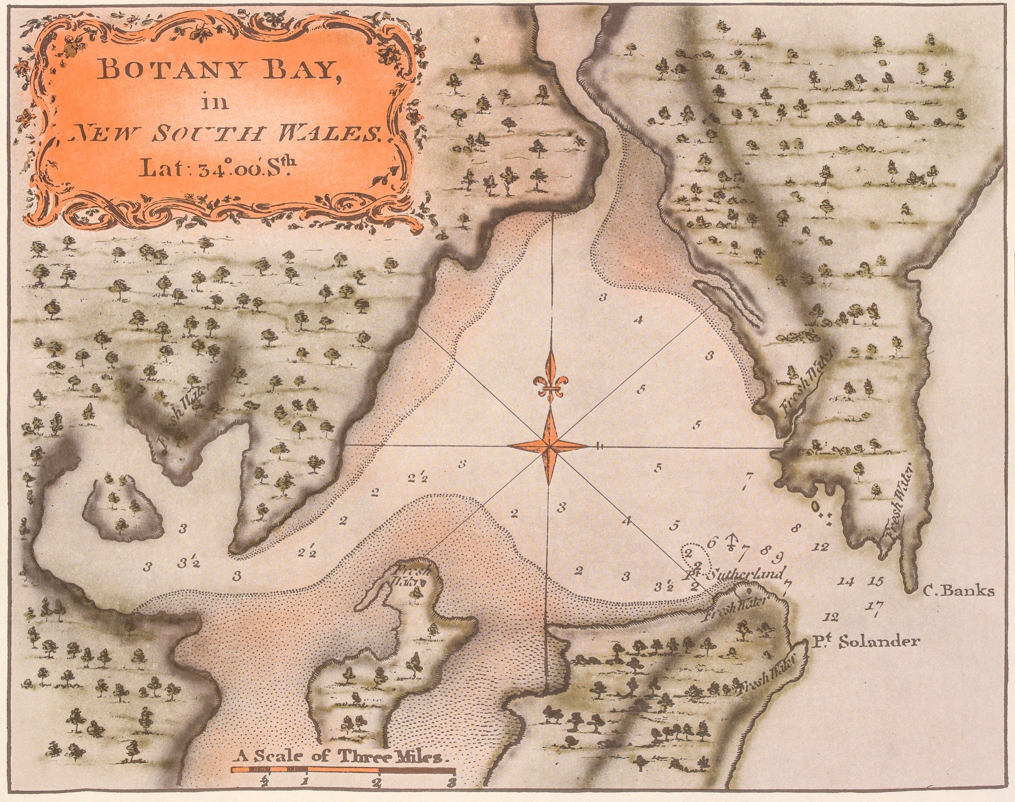 First published map of Sydney - Botany Bay in New South Wales, Captain Cook, 1770