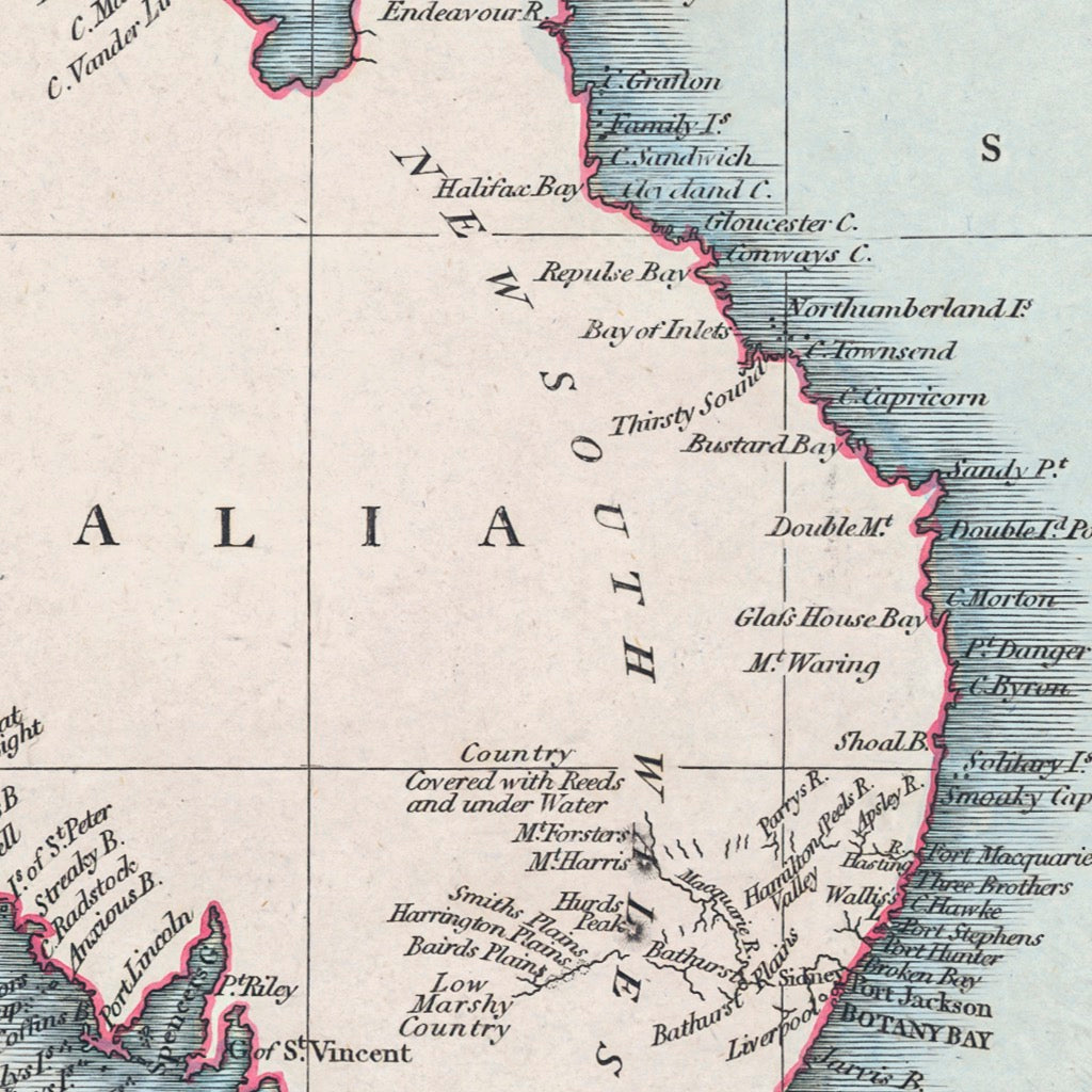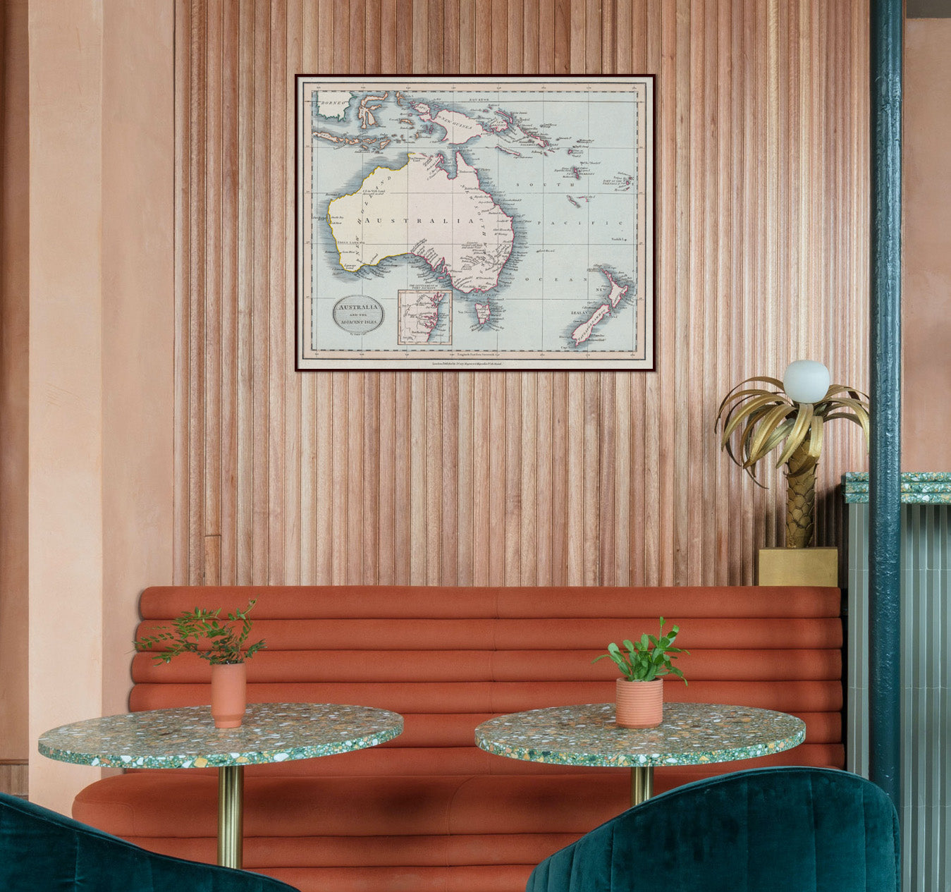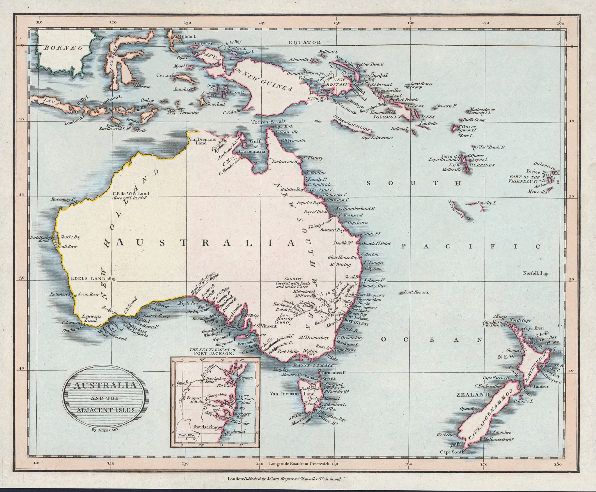 Map of Australia, New Zealand, Solomon Islands and Vanuatu.