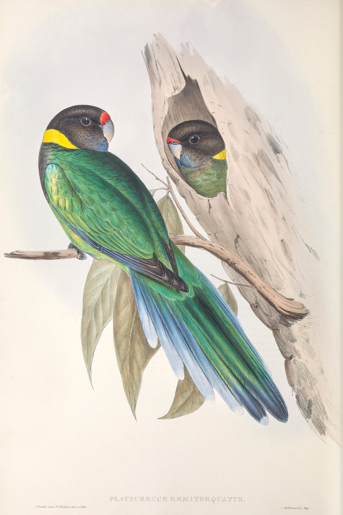 John Gould’s lavish publication, Birds of Australia, was the most ambitious and finest ever published of Australian birds, included a staggering 681 large folio sized plates, 328 of which were species new to science. The illustration work by Gould’s wife Elizabeth and H.C Richter are magnificent and charming works of art as well as highly accurate ornithological studies.