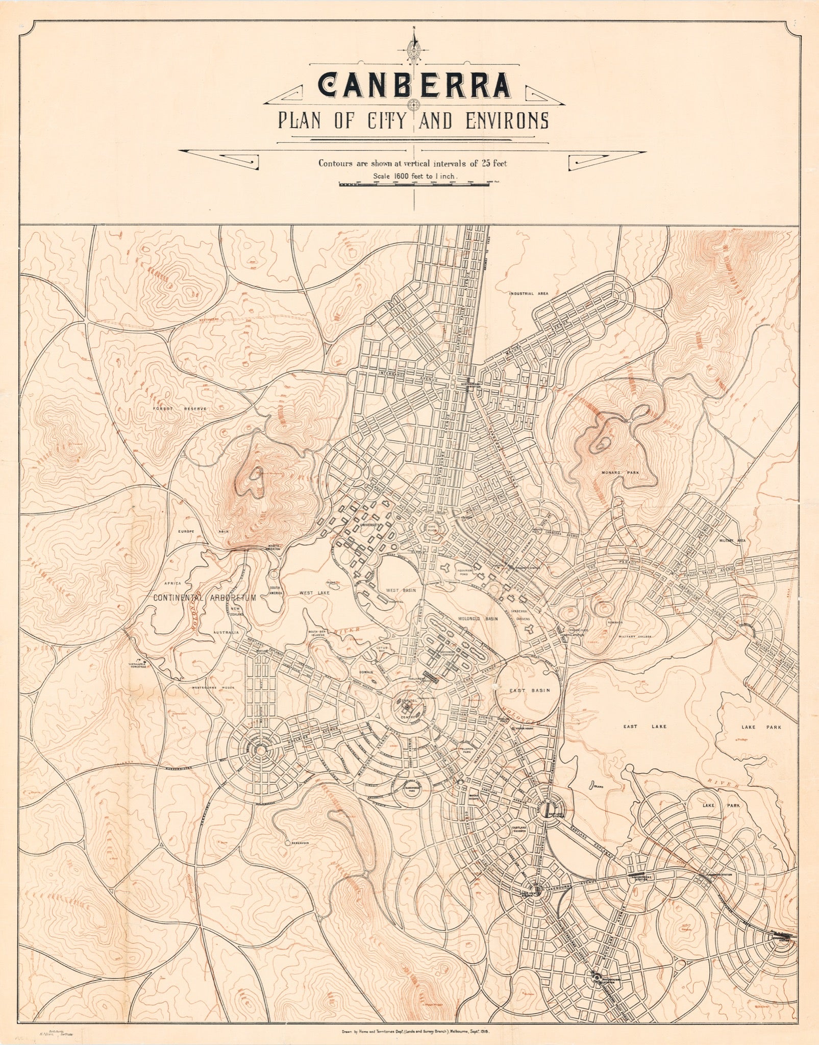 Walter and Marion Griffin's final version of the plan for the Federal Capital, after winning the worldwide competition in 1912.