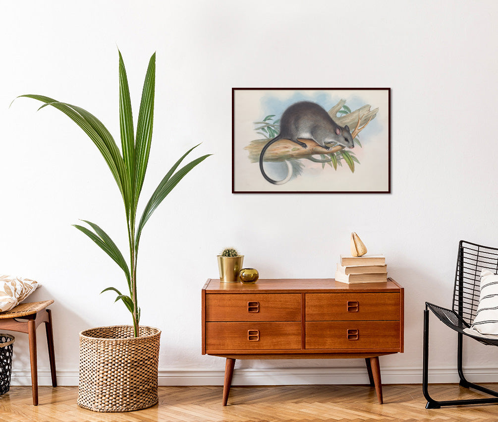 The black-footed tree-rat also known as Djintamoonga (Mesembriomys gouldii) is one of two endemic arboreal rat species from the genus Mesembriomys found in the northern regions of Australia. Called 'Hapolotis? hirsutus' or 'Long-haried hapalotis' by Gould.