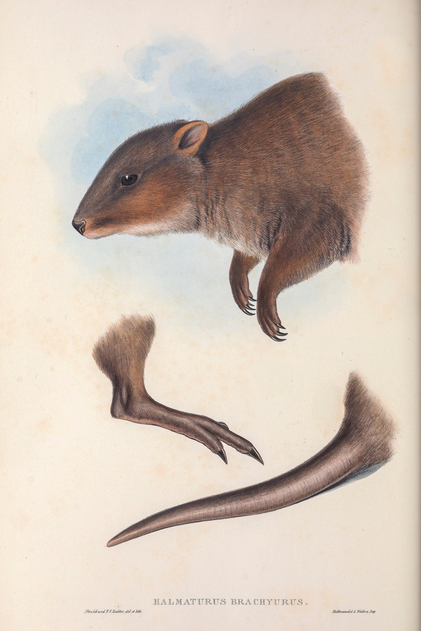 Quokka, or short-taled scrub wallaby, Setonix brachyurus, is a vulnerable threatened species, found in some isolated coastal areas and islands of south-western Australia. It is wll known at Rottnest Island, just off Perth, and at a small colony at Two Peoples Bay Nature Reserve, where they co-exist with the critically endangered Gilbert's potoroo.(Gould syn: Short-tailed wallaby Quokka, Halmaturus brachyurus).