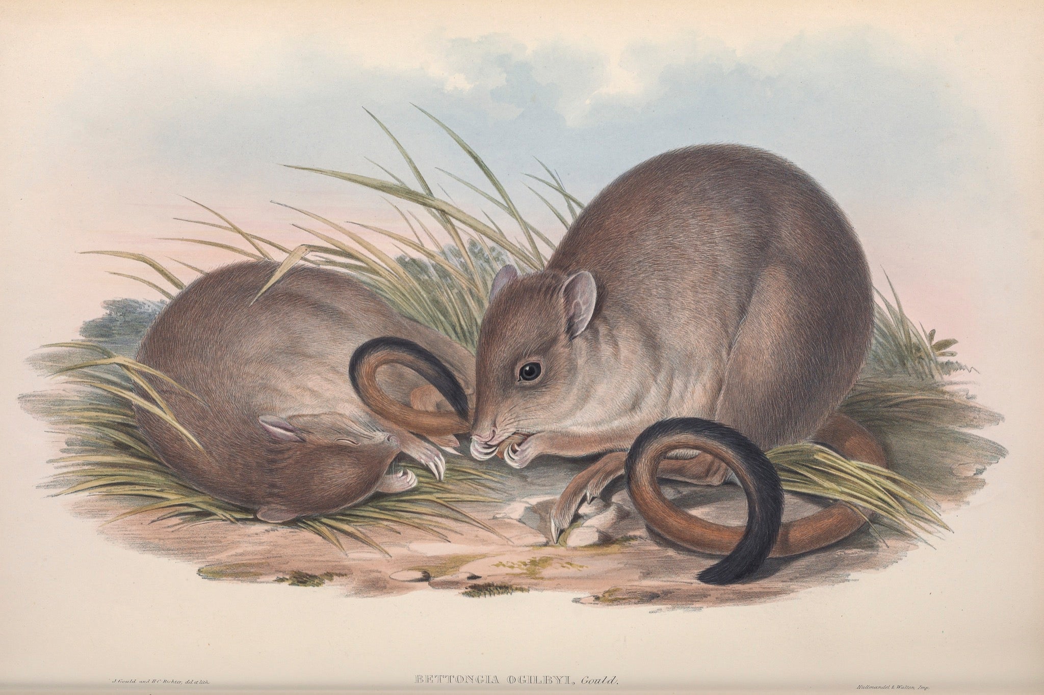 The woylie or brush-tailed bettong (Bettongia penicillata) is an extremely rare, small marsupial that is endemic to Australia. (Gould syn: Bettongia ogilbyi, Ogilby's Jerboa Kangaroo)