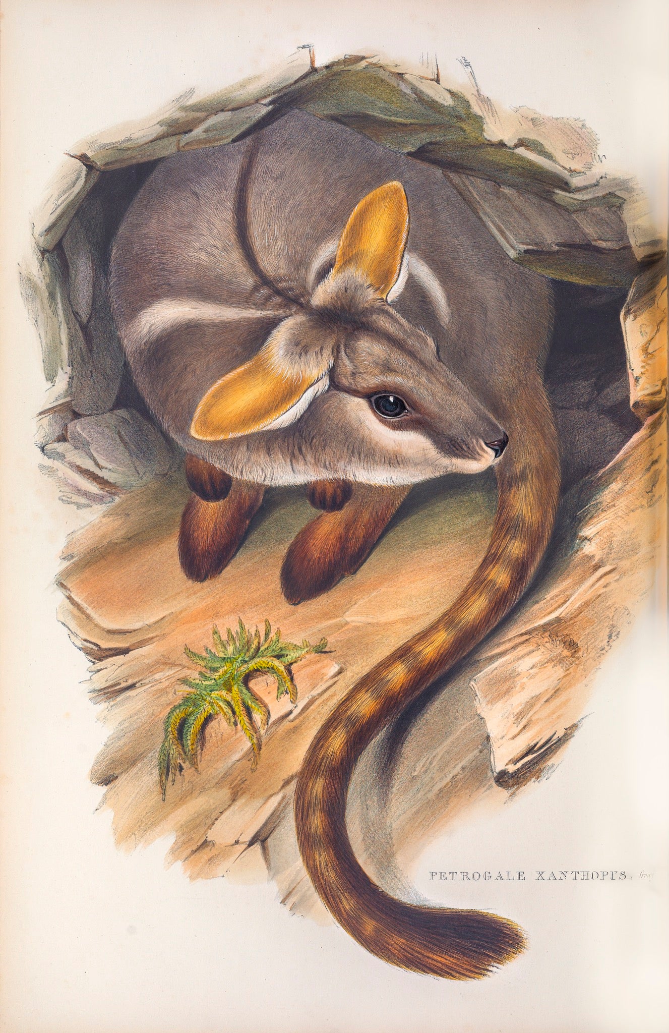 The yellow-footed rock-wallaby (Petrogale xanthopus), formerly known as the ring-tailed rock-wallaby, is listed as a Near Threatened species. It is found in small areas in inland Australia, and inhabits rock outcrops.