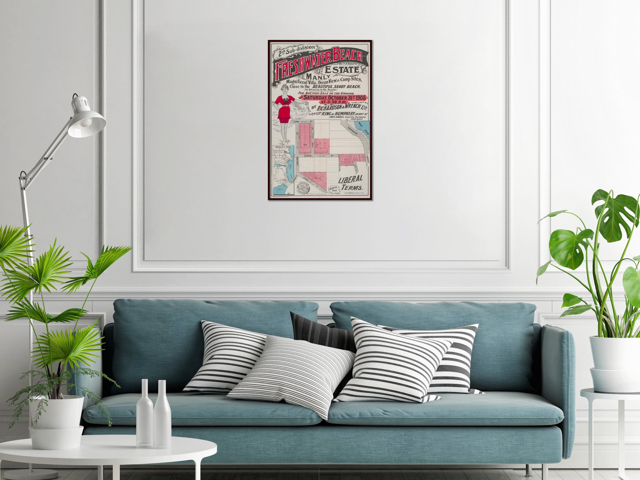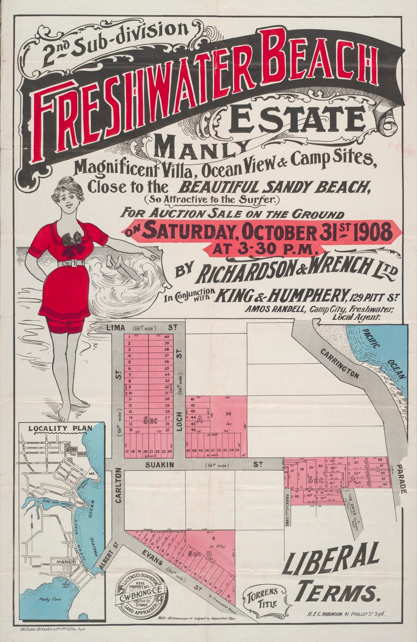 Real estate poster..'... Magnificent villa, ocean view & camp sites, close to the beautiful sandy beach (so attractive to the surfer).'