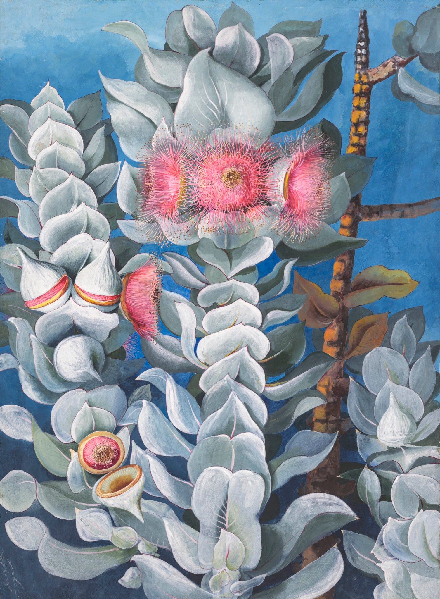 Ellis Rowan (1848-1922) stands out today as one of the great Australian artists and natural historians of the 19th century. Her achievements as an artist, naturalist and intrepid explorer, however, were not fully recognised in her time. Indeed, despite winning 10 gold medals at international exhibitions in Australia, India, England, Europe and the United States, from 1879-1893, including highest honours at the Melbourne 1888 Centennial Exhibition, she was rejected by the male-dominated arts establishment...Leaving Australia in the 1890s she enjoyed flourishing success in London. Queen Victoria acquired some of her paintings, she illustrated American botanical books, and she spent time in New Zealand. Upon her return to Australia in 1905 ‘she pursued her search to find and record every species of wildflower on the continent’. Her Australian works typically date from two periods: the 1880s and post 1905...Undeterred by her age or gender, she travelled to New Guinea in 1916-1918, enduring arduous conditions in uncharted mountains and rainforests, recording some of her finest paintings, including rare tropical flowers and 47 of 52 known species of the birds of paradise (setting the birds free after painting them)...Today, Ellis Rowan’s paintings count amongst the treasures of the National Library of Australia, which holds a significant collection..(Notes from Australian Dictionary of Biography)