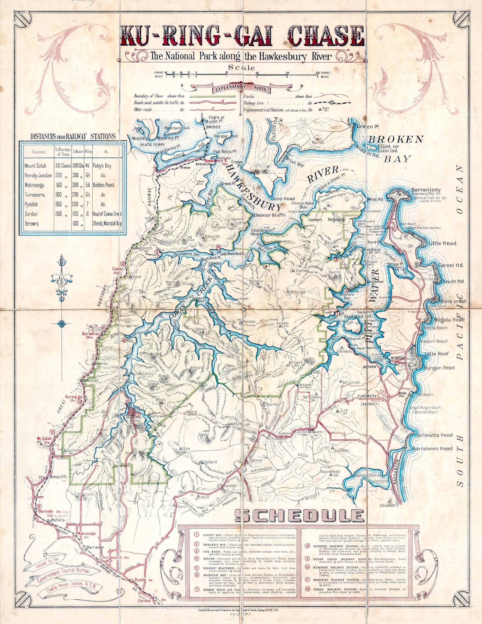 Old map of Hawkesbury River, Kuringai Chase, Pittwater, and the Northern Beaches, Sydney.
