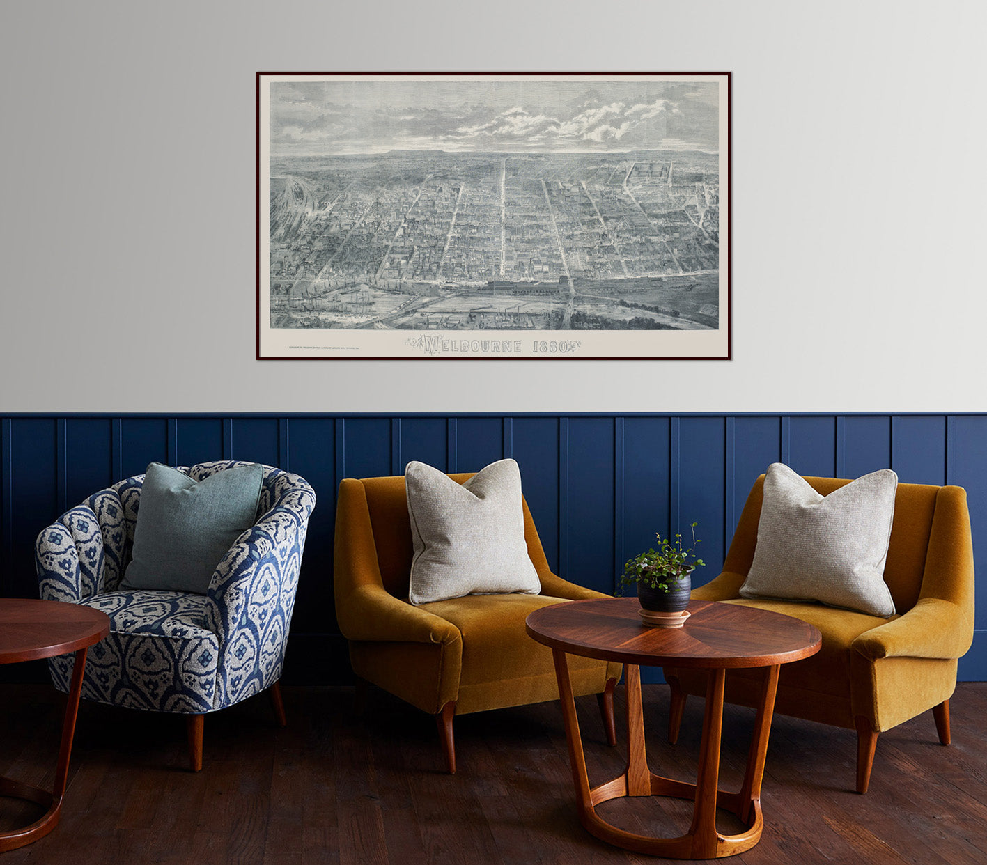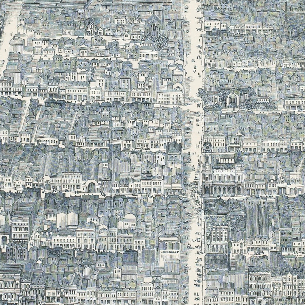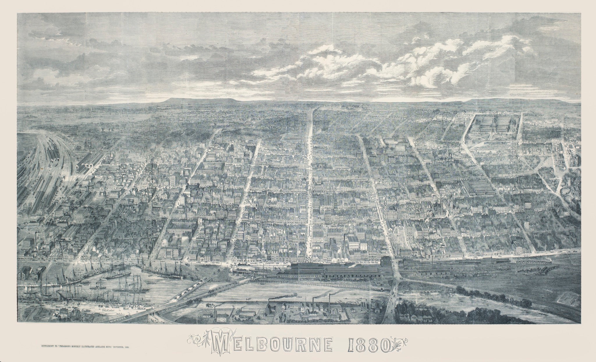 Published at the time of the International Exhibition, no detail has been spared in this extraordinary birdseye view of Melbourne, on show to the world. The view looks north across the Yarra (from above Southbank) with Flinders Street Station and Elizabeth Street centre. Southern Cross Station ('Spencer Street') is at left. The Royal Exhibition Building top right...The view is based on De Gruchy & Leigh earlier lithographic view of 1871, and makes for fascinating comparison.