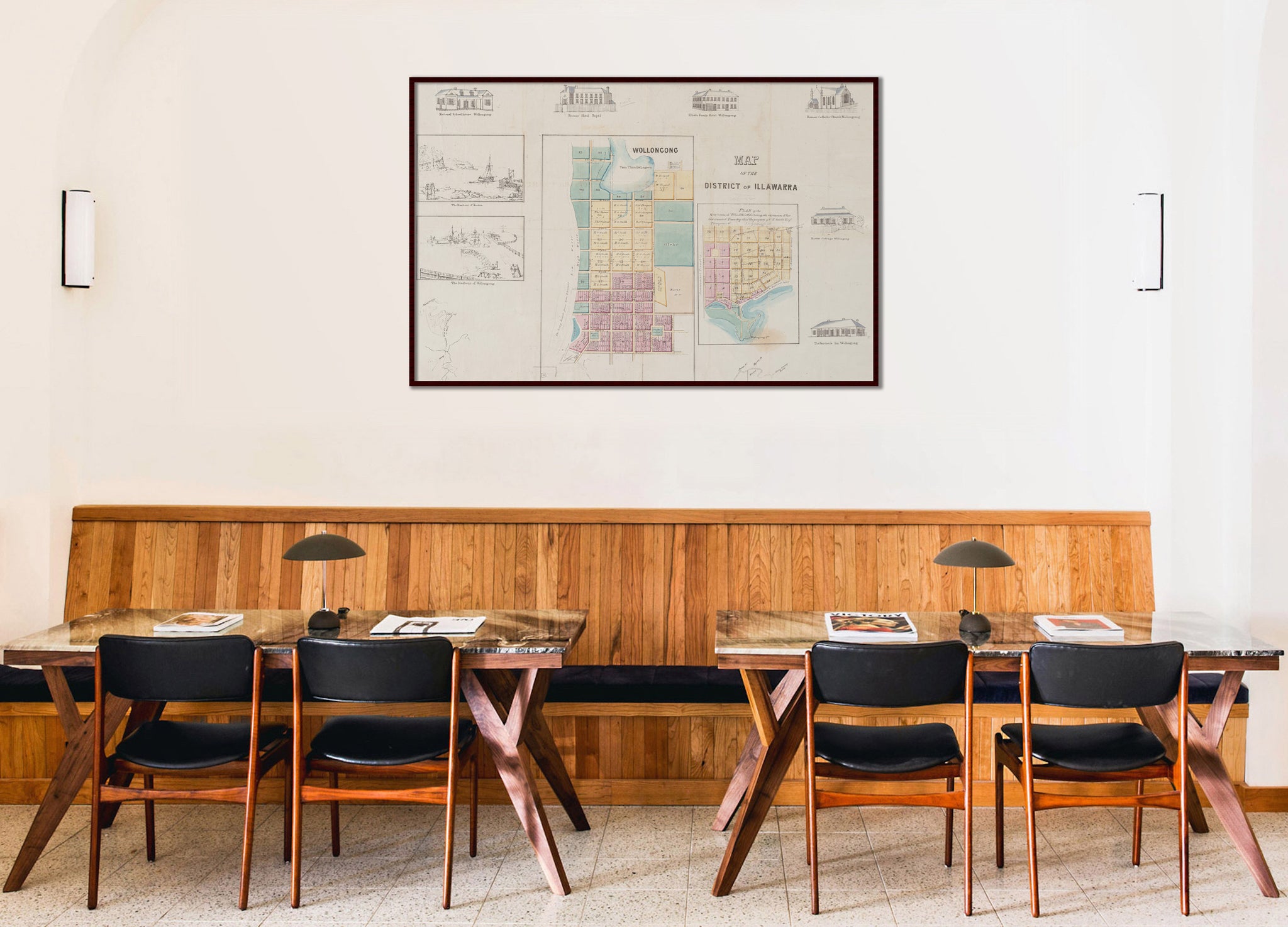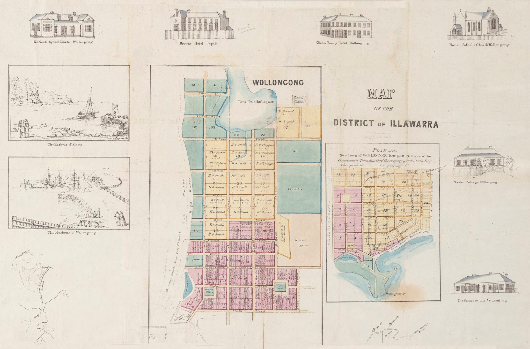 Early 1840s map showing early European settlement at Wollongong, and historic buildings around Illawarra..