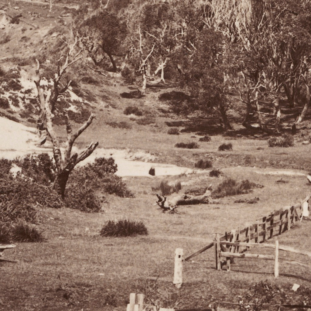 The Illawarra coast circa 1890, at Coledale, before suburban development. The Austinmer coal loading jetty is visible in the distance.