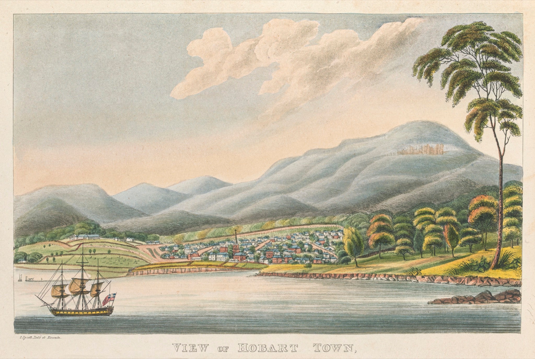 From Joseph Lycett's Views in Australia, or, New South Wales & Van Diemen's Land delineated, in fifty views: dedicated by permission to the Right Honble. Earl Bathurst, 1824-1825