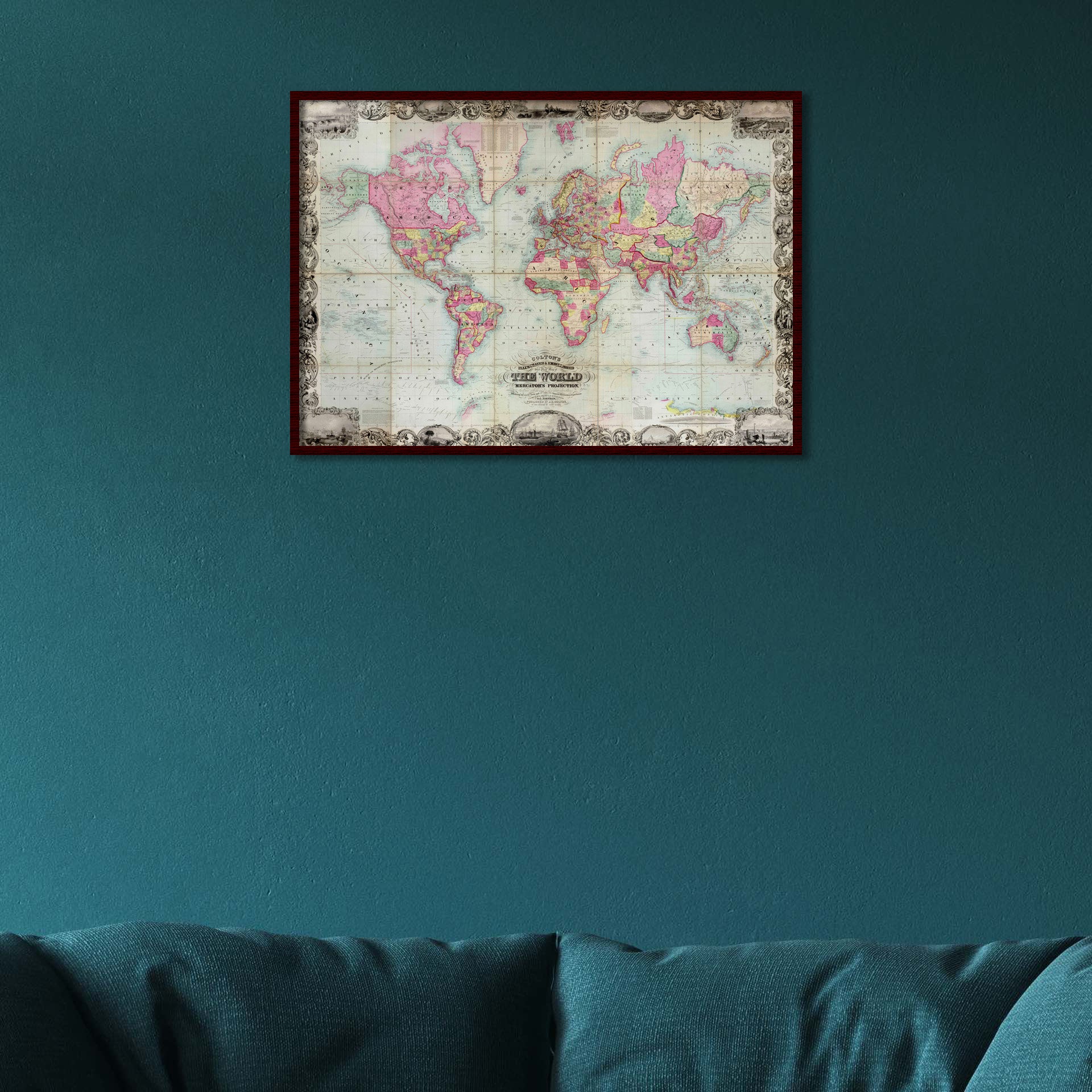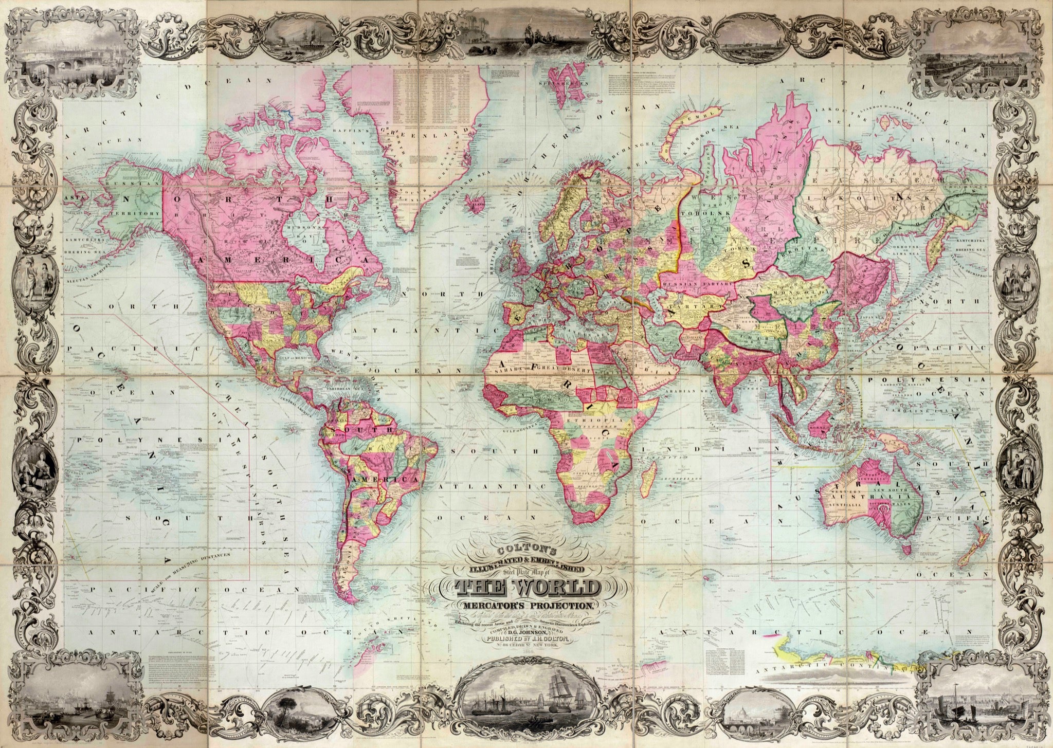 A large world map published in America during the civil war era, Colton's well-regarded atlas's were produced for commercial distribution across the USA, and, as claimed on the title block, were 'compiled from the latest and most authentic sources - Exhibiting the recent Arctic and Antarctic discoveries & explorations.' Australia is shown prior to the establishment of Queensland as a separate colony to New South Wales in 1859.