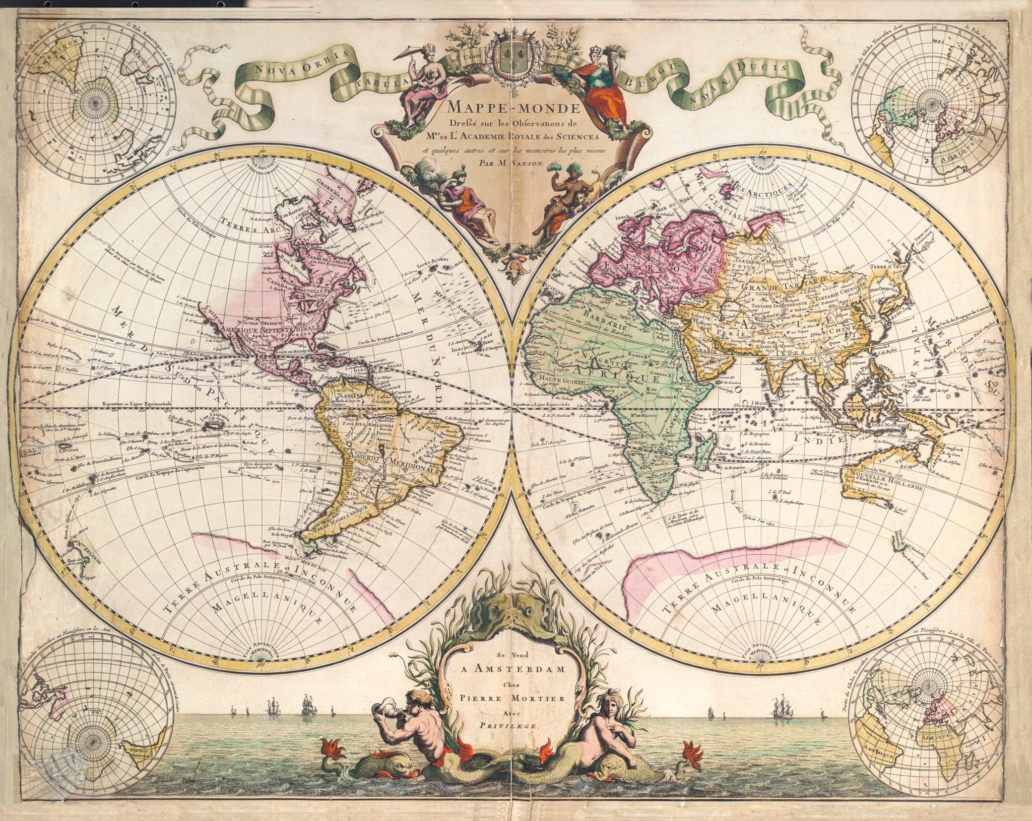 Mappe-monde dresse sur les observations de l'Academie Royale des Sciences et quelque autres et sur les memoires les plus recens / par M. Sanson