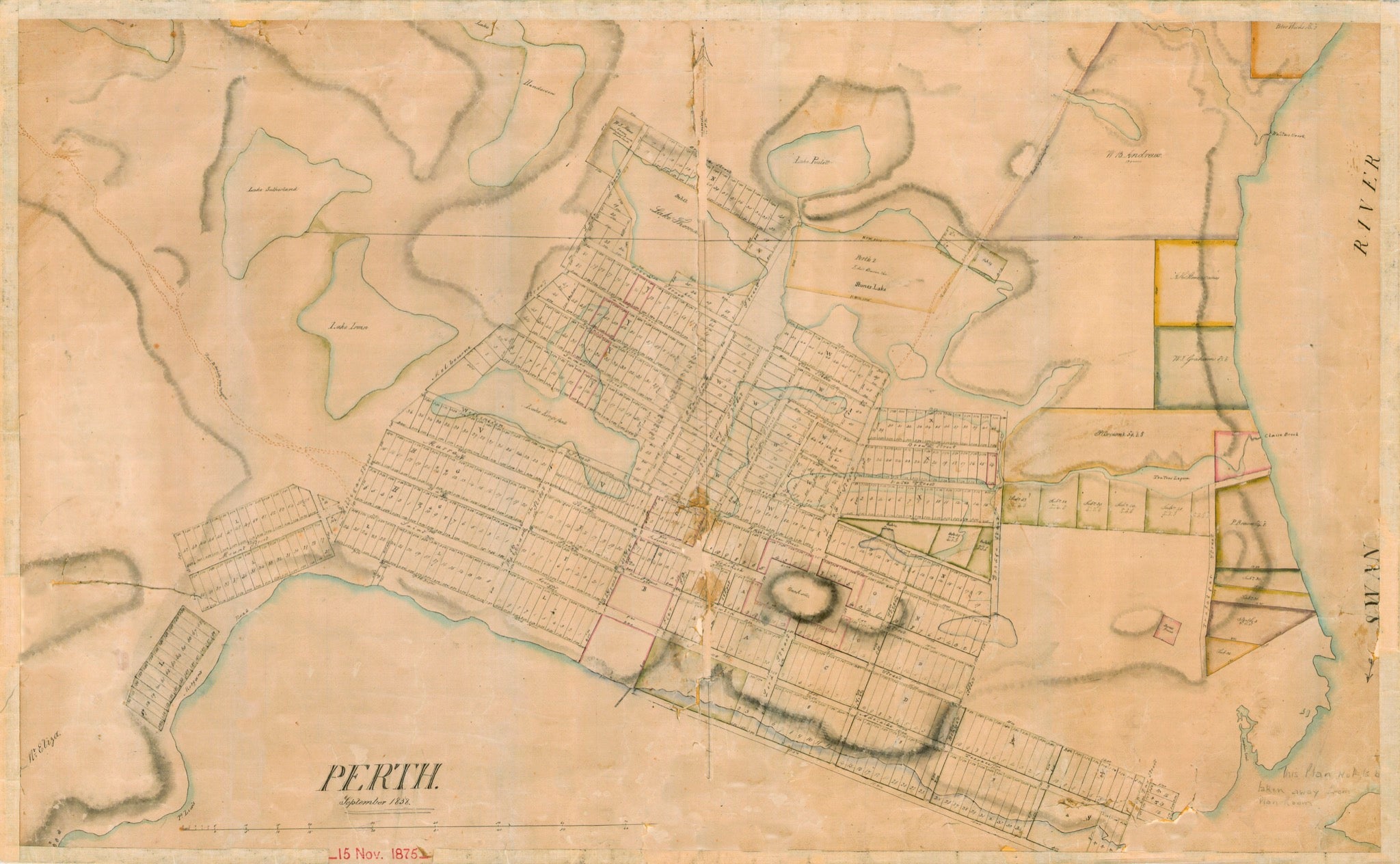 John Septimus Roe’s masterful plan of Perth, aligned to the ridge and shore line, fits beautifully in the landscape and continues to serves Perth well. Town hall, civic square and church steeple form the core of the town, surrounded by a grid of elegant streets in the Georgian neo-classical manner, running down to water...What is very evident on this plan is the number of lakes and tea tree wetlands of the original site. Rich in biodiversity, the area were part of the hunting grounds and spiritual places of the aboriginal Noongar people who have lived on the Swan River for 35,000 years. These ‘swamps’ were soon filled in by suburban expansion...Today's residents can be thankful that Septimus Roe, as WA’s first Surveyor General, fought to preserve the land around Mt Eliza as a forest recreation reserve, which today is Kings Park, one the nation’s great parks.